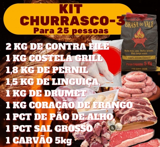 3. Kit Churrasco 1. Será enviado de acordo c/ a carne do dia - Contra Filé ou Alcatra.
